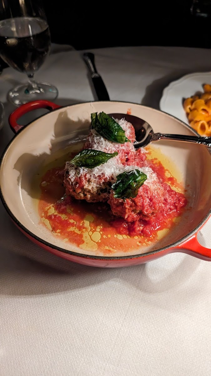 We went here for my son’s 20th birthday. The music and ambiance was great! Service is excellent but be aware to ask about prices of specials. We paid wwwaaaayyy too much for a steak that’s was average. Overall worth going at least once. Meatballs were fine, bread basket is delicious, great wine selection, rigatoni is amazing but steak is overpriced. Comes sliced which is nice.